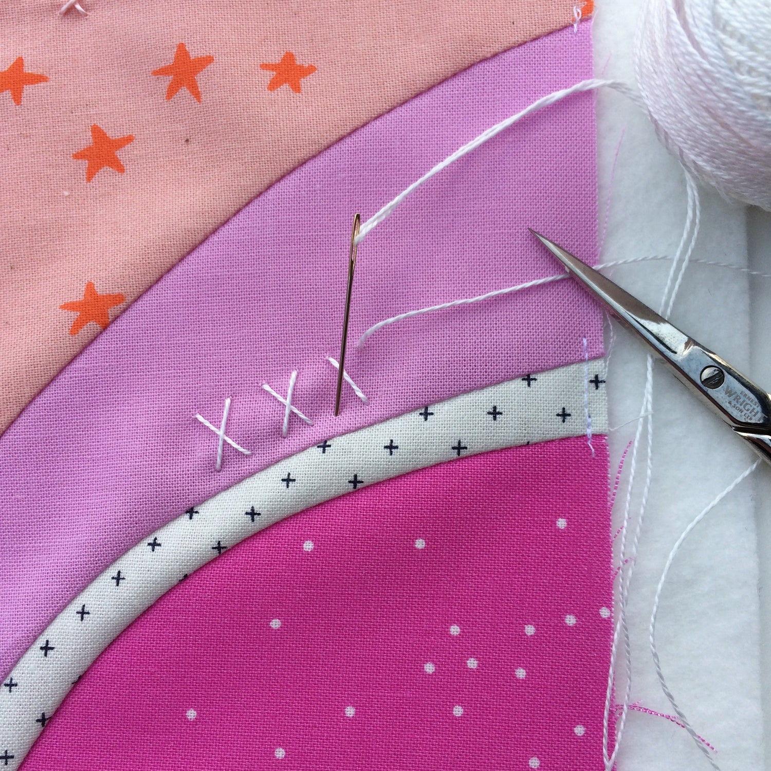 - Materials used: quilting cotton, batting (scraps from your last quilt would do), rope, embroidery thread and needle