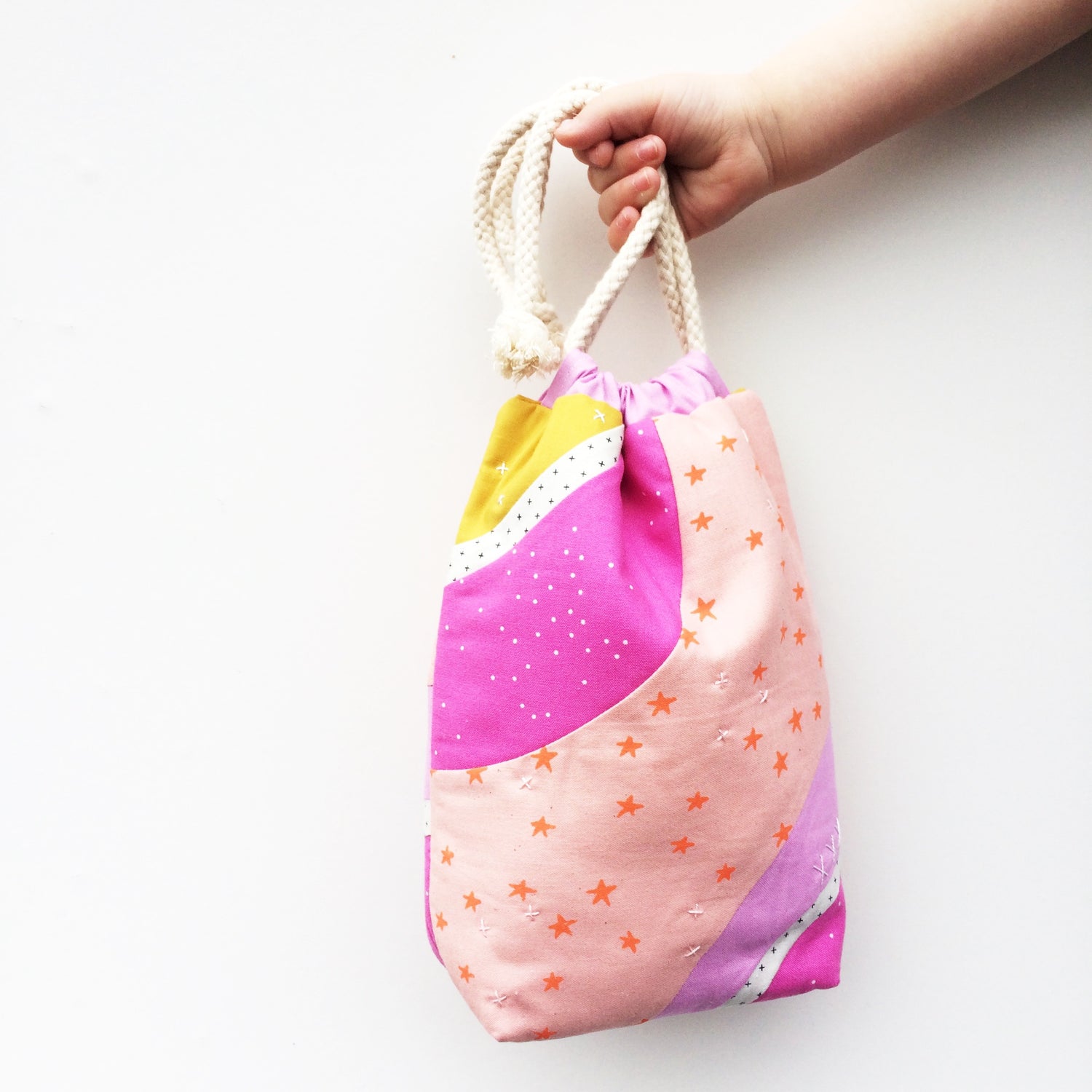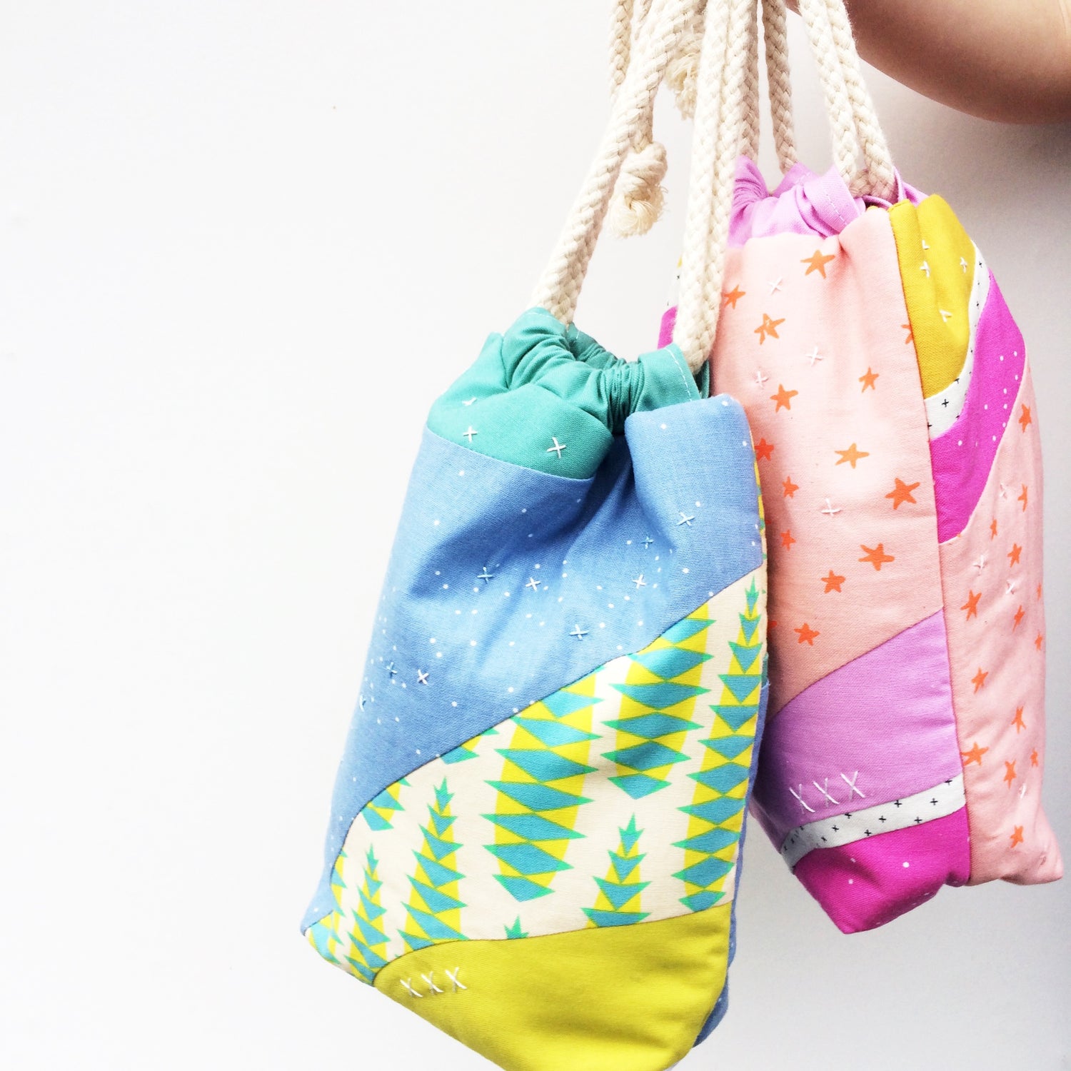 The pattern also includes instructions of how to personalise your panels using neat little stitches. And I’ll talk you through how to turn your panel into a pretty little drawstring bag.