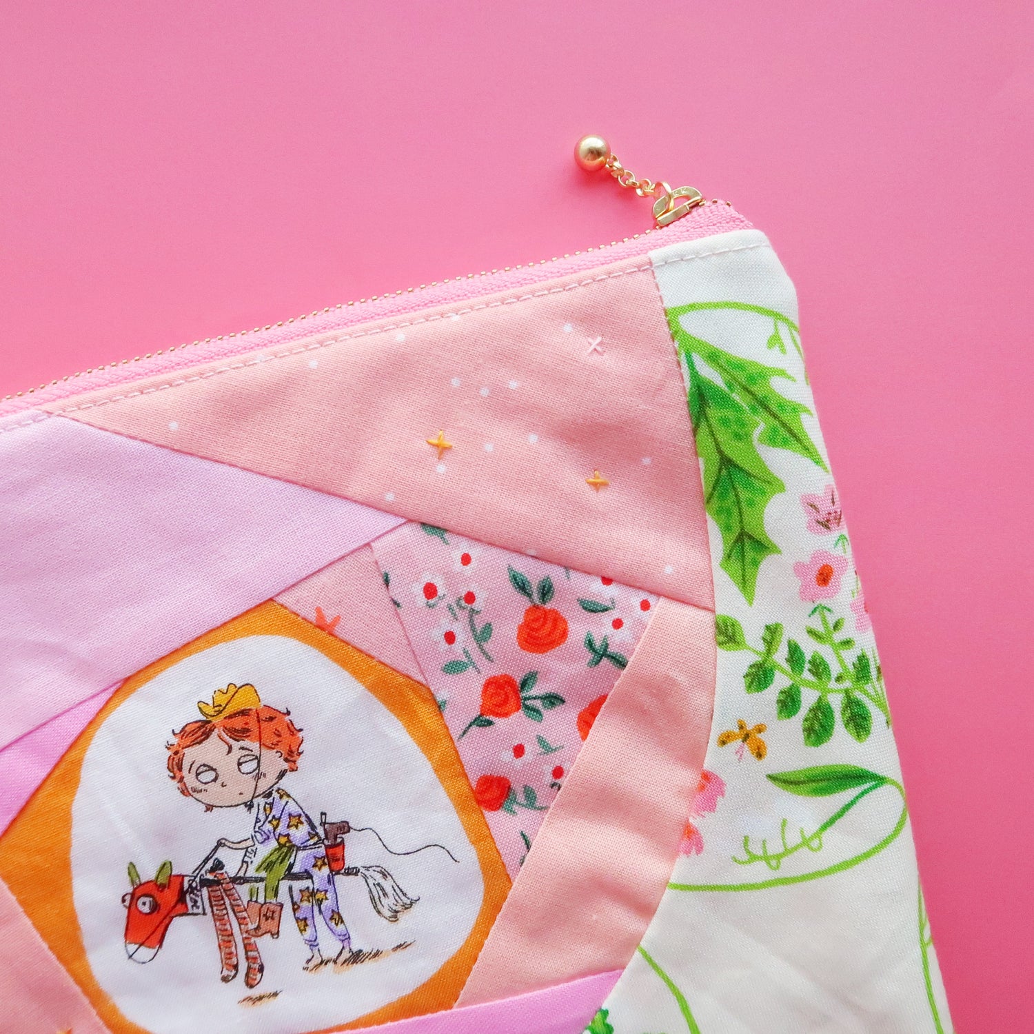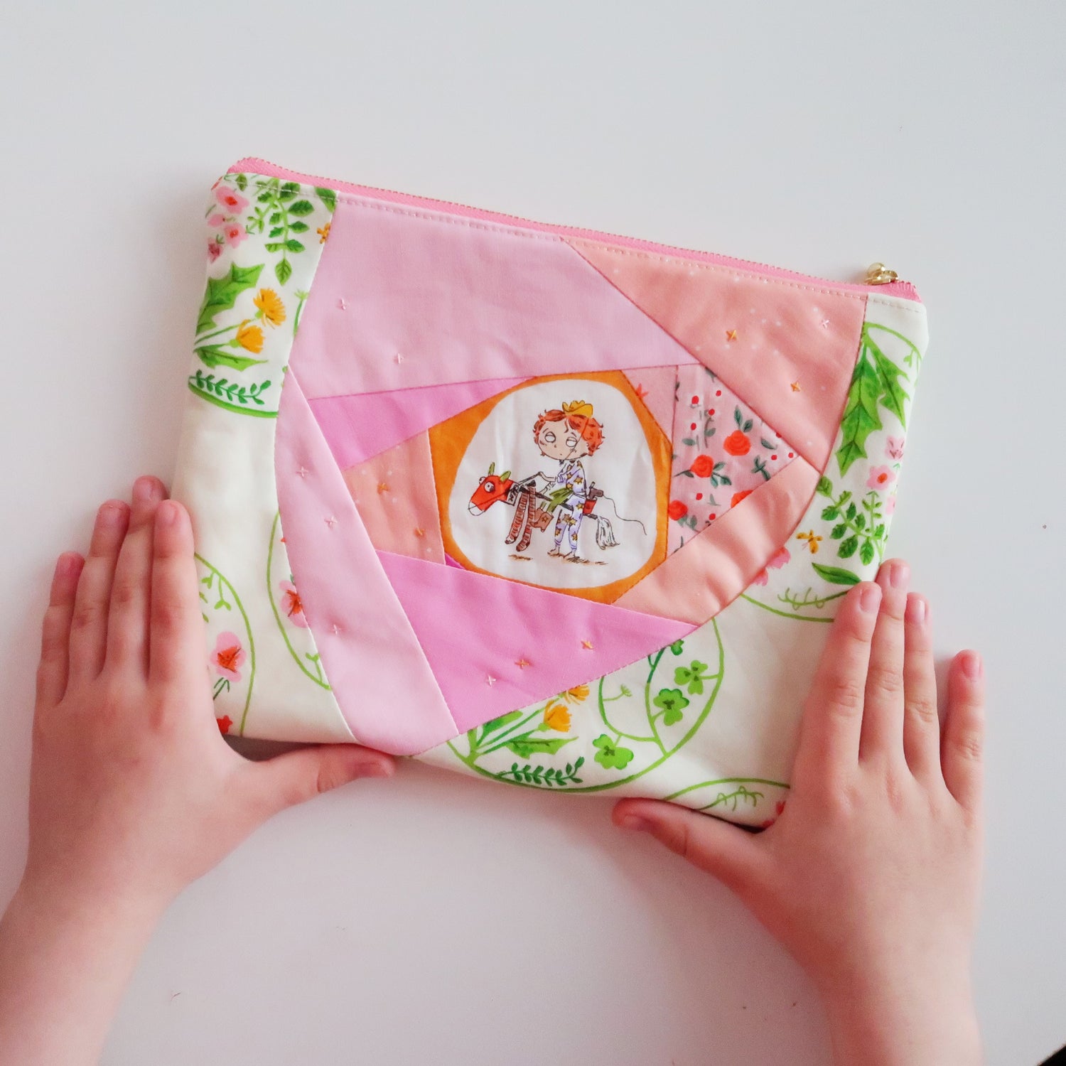 The pattern also includes instructions of how to personalise your panels using neat little stitches. And I’ll talk you through how to turn your panel into a pretty little zipper pouch.