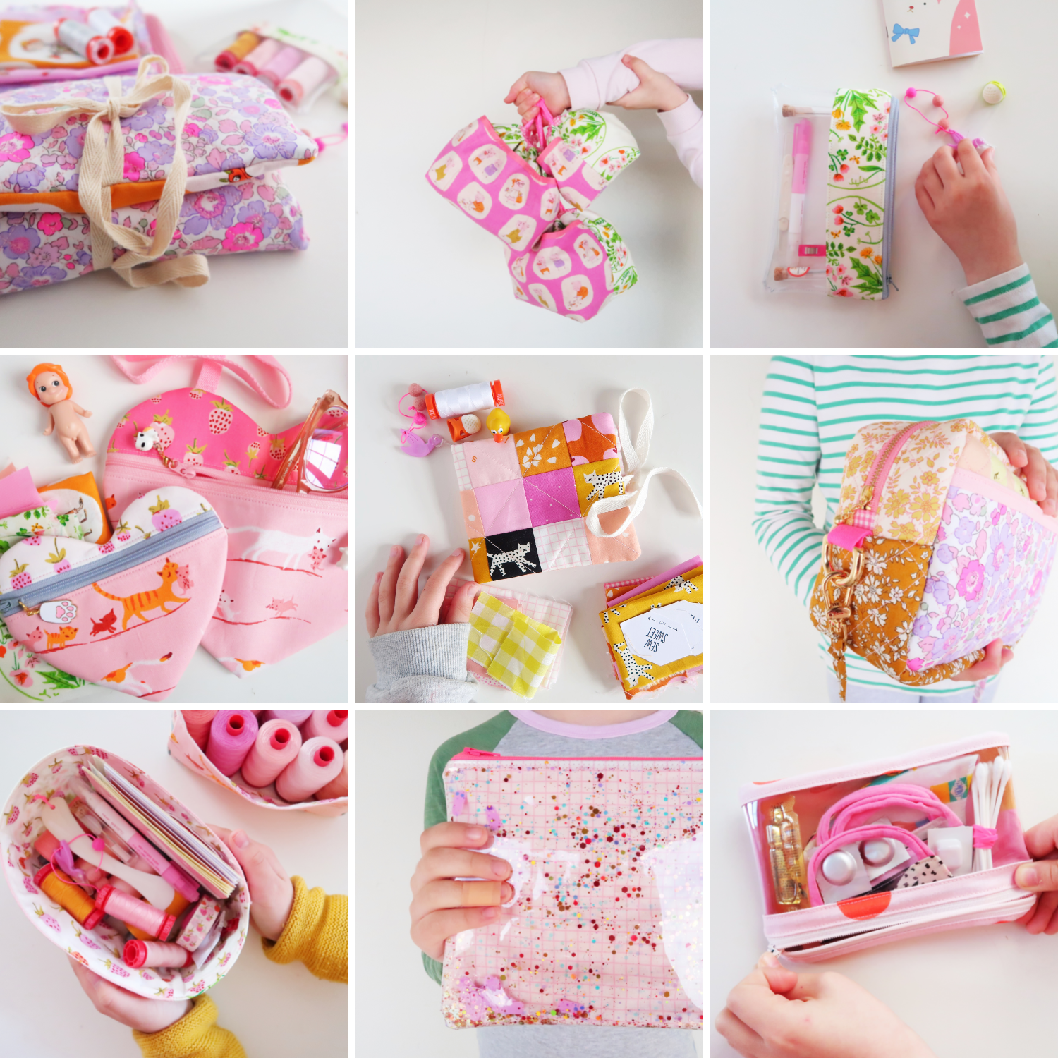Please check each individual pattern for material requirements and finished sizes (using the links above).