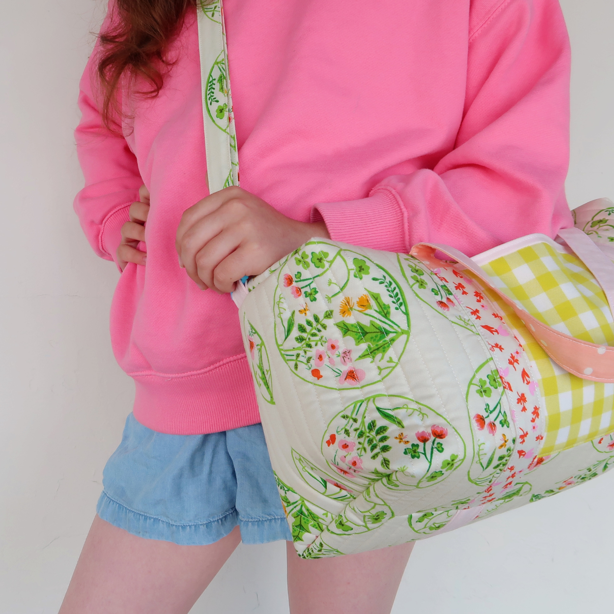The PDF Sewing Pattern includes two sizes and two styles (with and without handles/ pocket). Make a whole cloth version (aka the outside is created using one piece of fabric) or a patchwork version (aka using your fave scraps to create something totally unique).