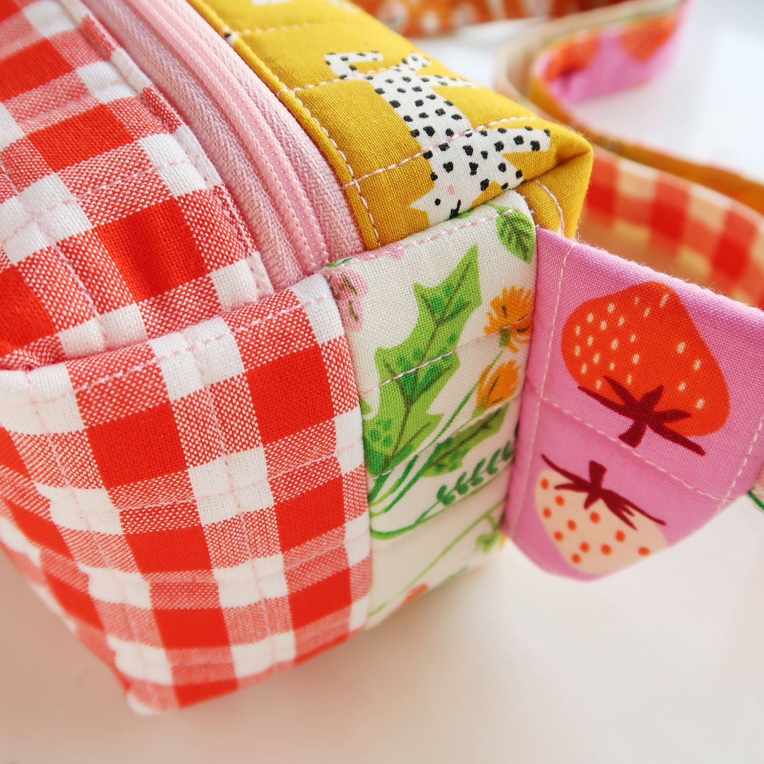 The PDF Sewing Pattern is showing you how to make a whole cloth version (aka the outside is created using one piece of fabric) or a scrappy, patchwork version (aka using your fave scraps to create something totally unique). Also included is access to loads of video tutorials, tips and tricks.