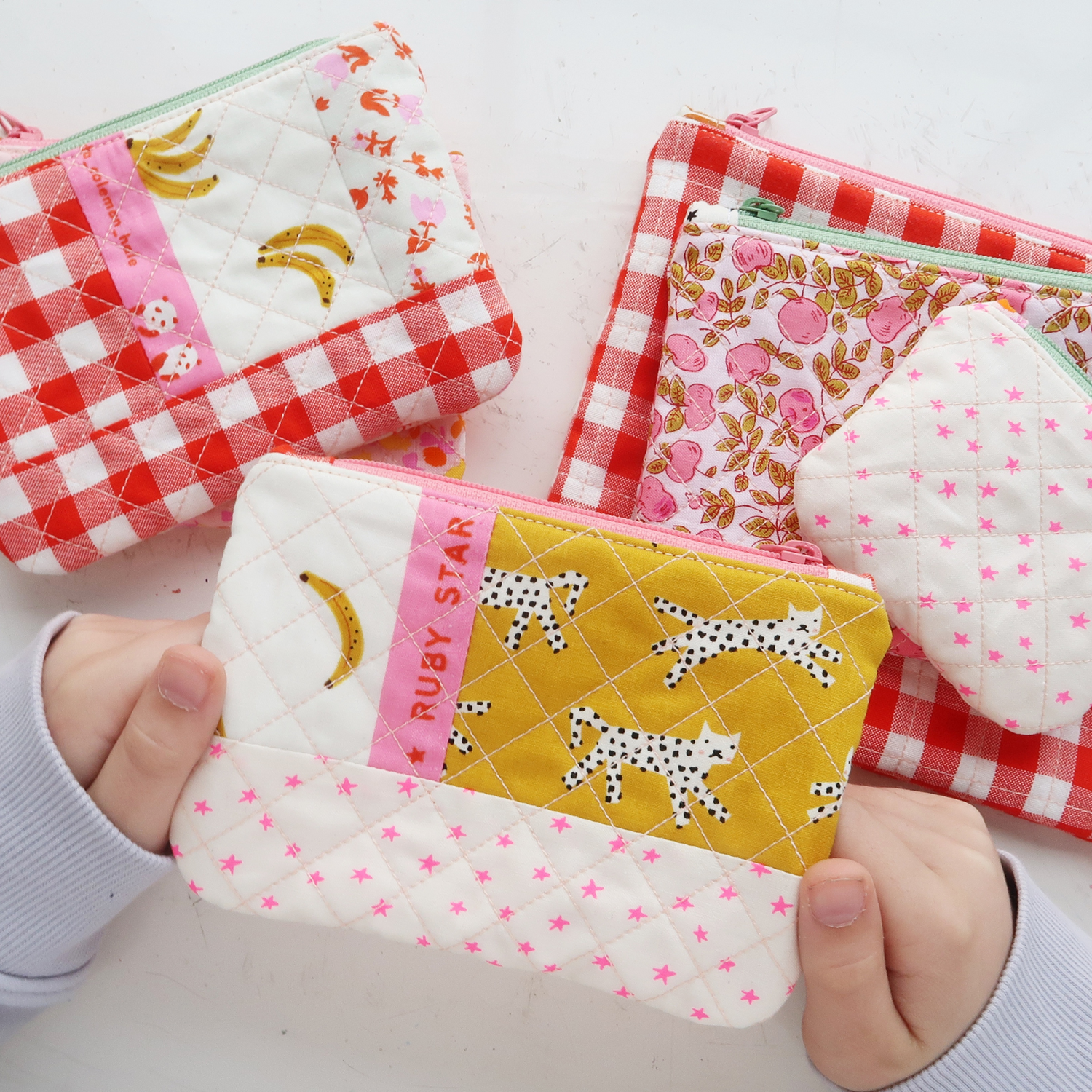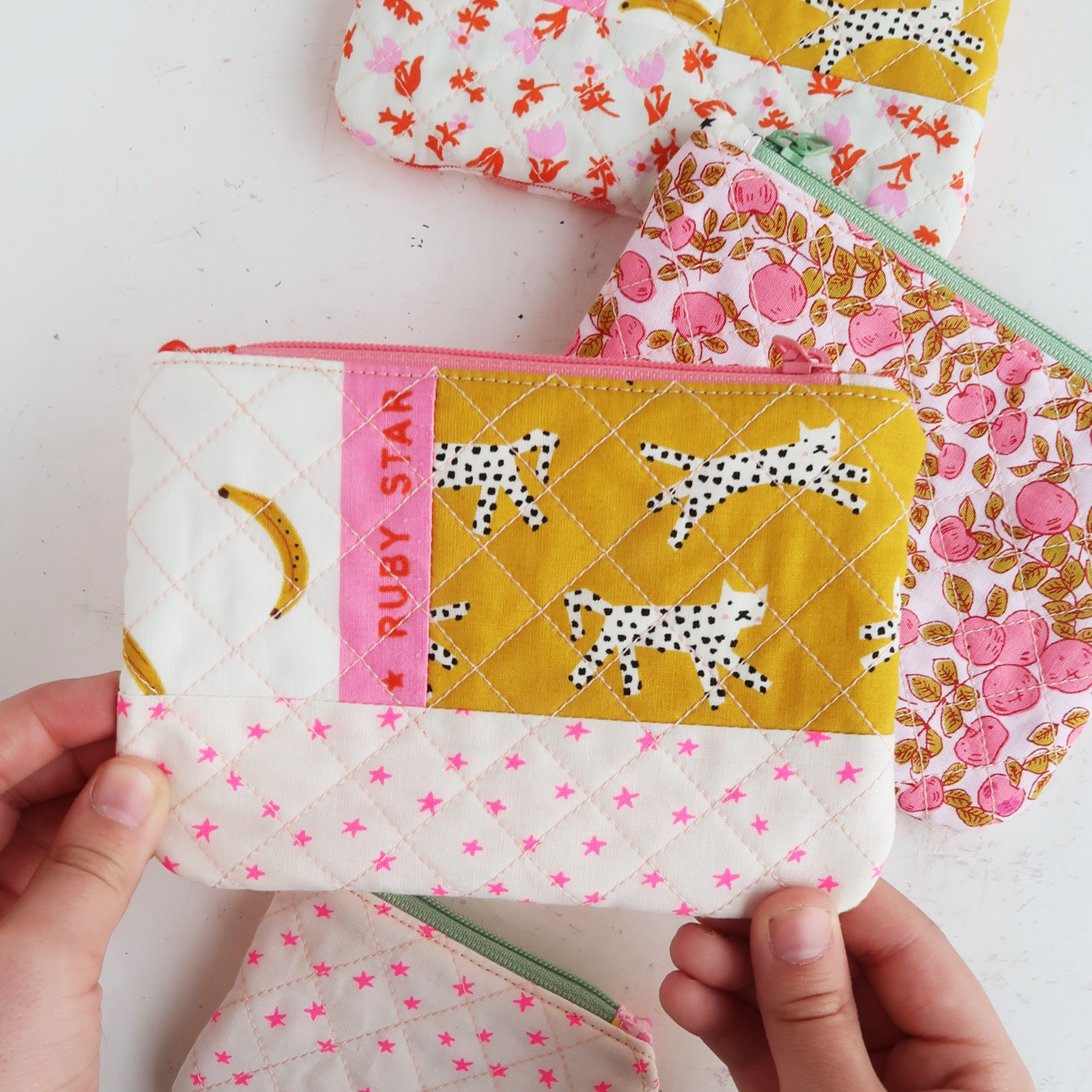 - Materials used: quilting cotton, batting, zipper, thread (find details on the blog)