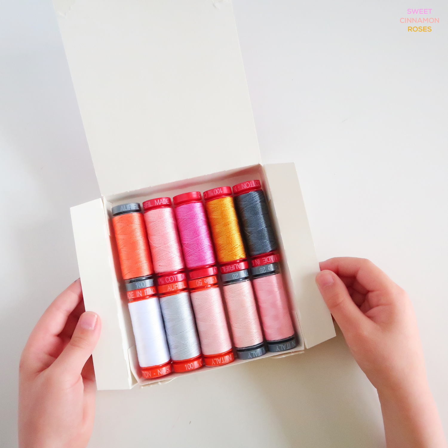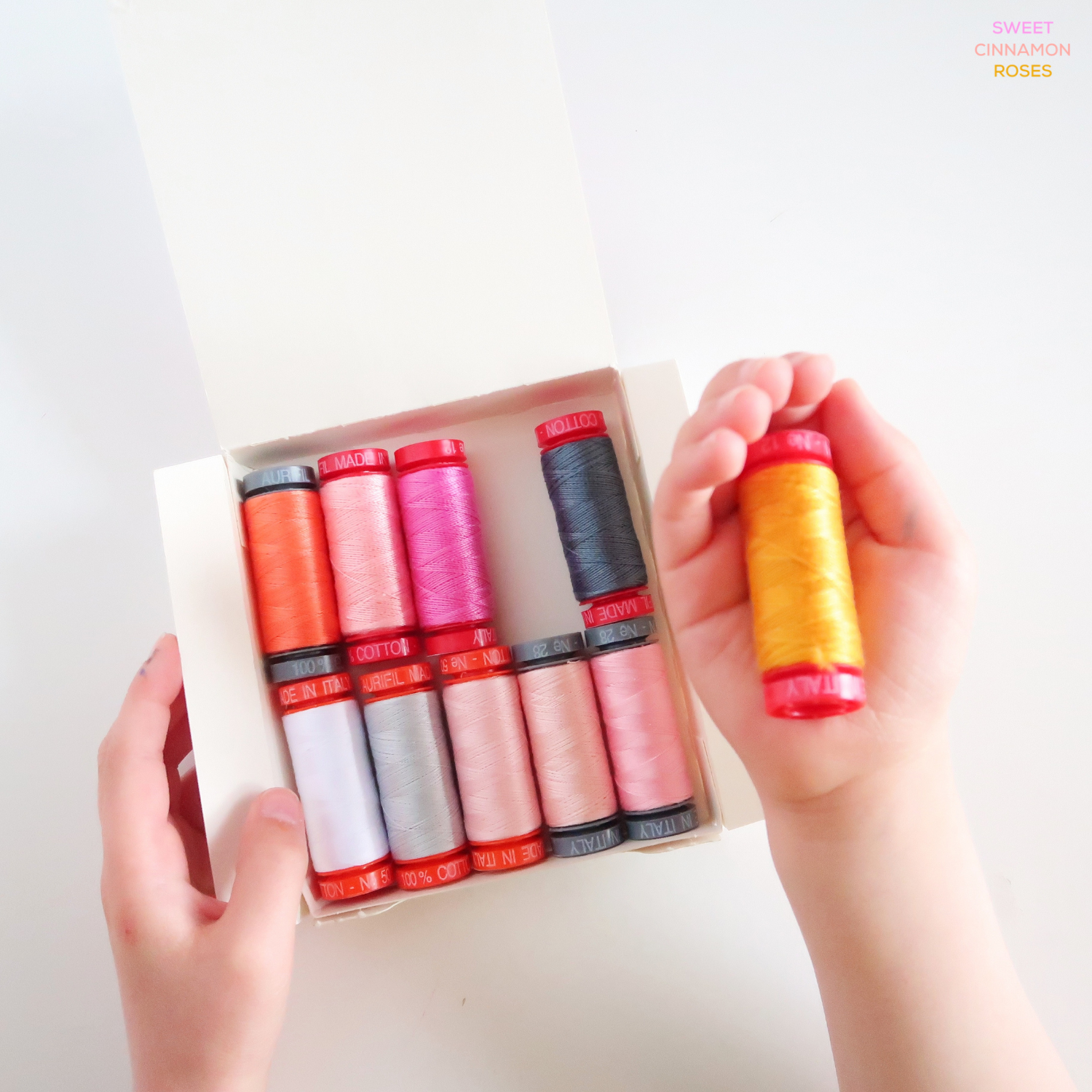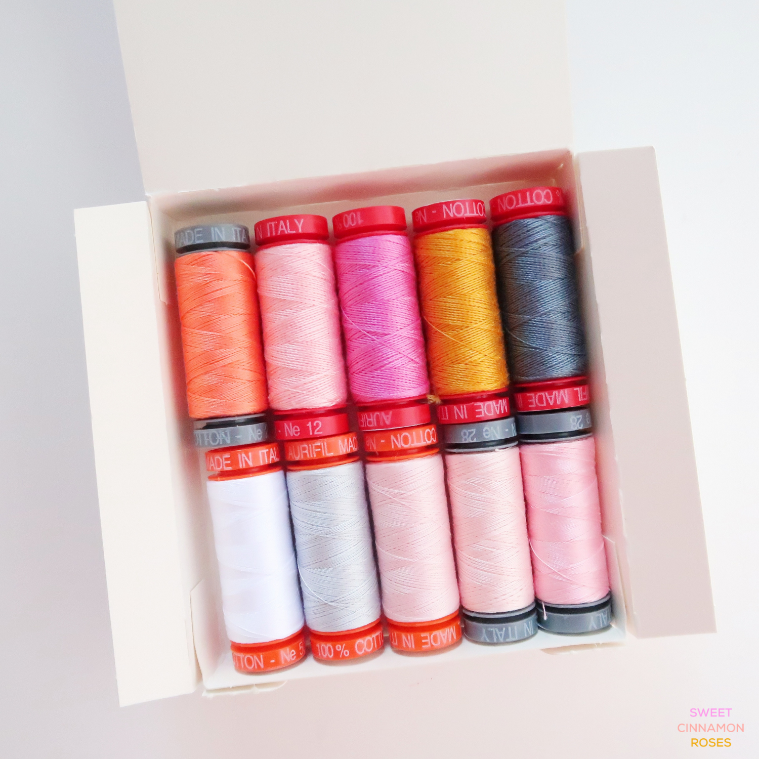Ten spools - all you’ll ever need! Whichever of my patterns you choose to make, this box will have you covered. Three spools of Aurifil 50wt, for bag construction and quilt making - for all those seams you want to last but are hidden inside. And for all your visible seams, three spools of Aurifil 28wt - making topstitching and machine quilting a feature of your project. Finally, four gorgeous spools of Aurifil 12wt, for hand quilting and embroidery - making your work stand out like no other.